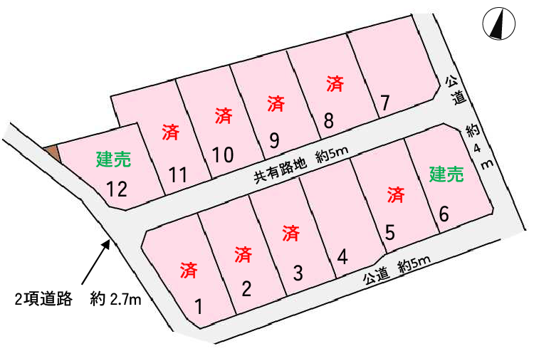 暮らしやすさを追求した分譲地計画分譲地の道路は「開発道路」と言われ、都市計画法による開発許可を受けて設置された公共的な施設です。管理が市町村となるため、コンクリートなどが劣化した場合には市町村が修繕してくれる他、建築基準法により私道よりも道幅が広く、分譲地内での車同士のすれ違いや駐車のしやすさが特徴です。