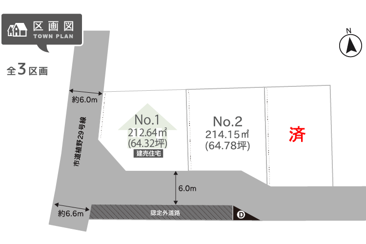 暮らしやすさを追求した分譲地計画分譲地の道路は「開発道路」と言われ、都市計画法による開発許可を受けて設置された公共的な施設です。管理が市町村となるため、コンクリートなどが劣化した場合には市町村が修繕してくれる他、建築基準法により私道よりも道幅が広く、分譲地内での車同士のすれ違いや駐車のしやすさが特徴です。