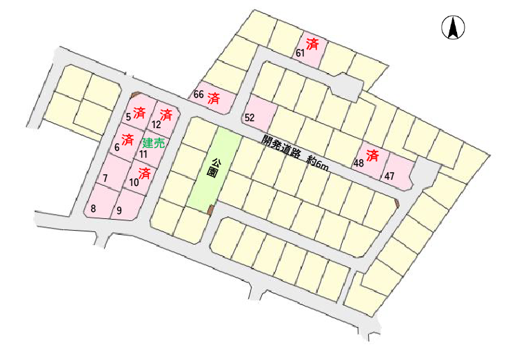 暮らしやすさを追求した分譲地計画分譲地の道路は「開発道路」と言われ、都市計画法による開発許可を受けて設置された公共的な施設です。管理が市町村となるため、コンクリートなどが劣化した場合には市町村が修繕してくれる他、建築基準法により私道よりも道幅が広く、分譲地内での車同士のすれ違いや駐車のしやすさが特徴です。