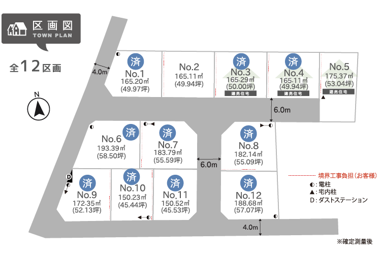 ・区画No.5は電気引き込みの為、宅内柱が必要となります(買主負担)