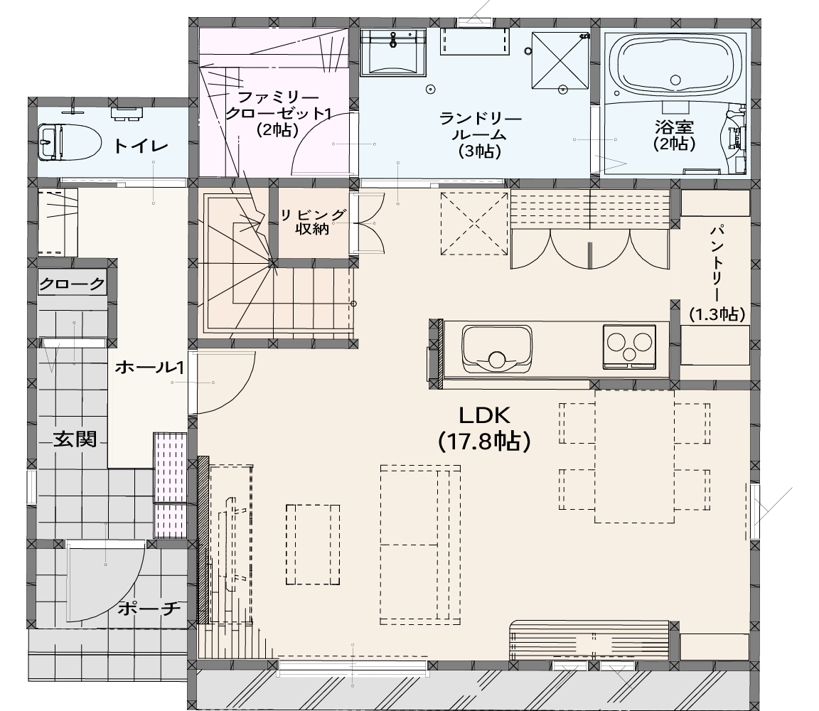 土地の形状や立地条件に合わせて、全物件を1から設計。累計18,000棟の実績を生かし、家事ラク動線や空間を有効活用した収納スペース、広々LDKなど、快適な暮らしを叶える工夫がたくさん。