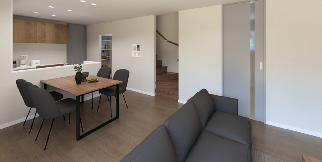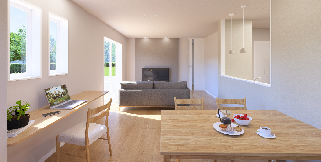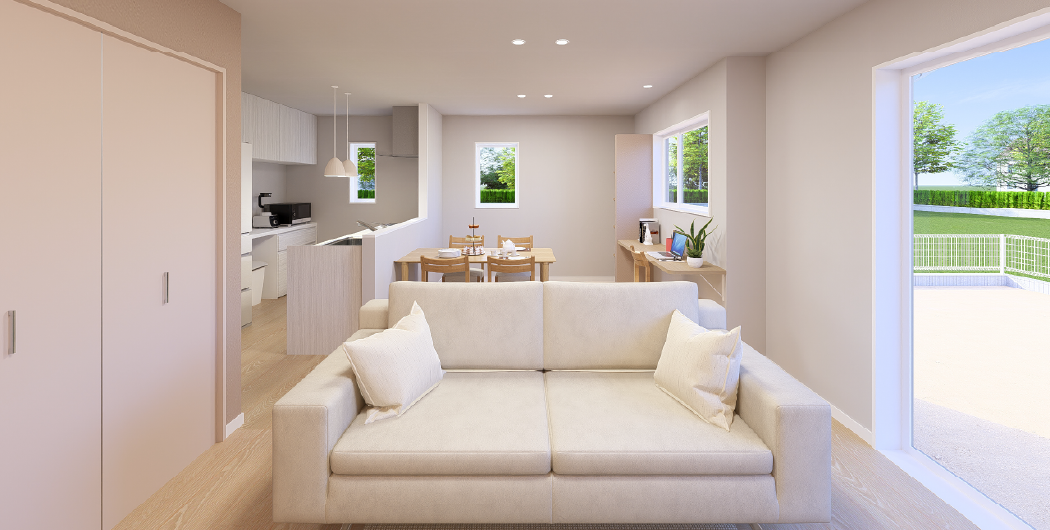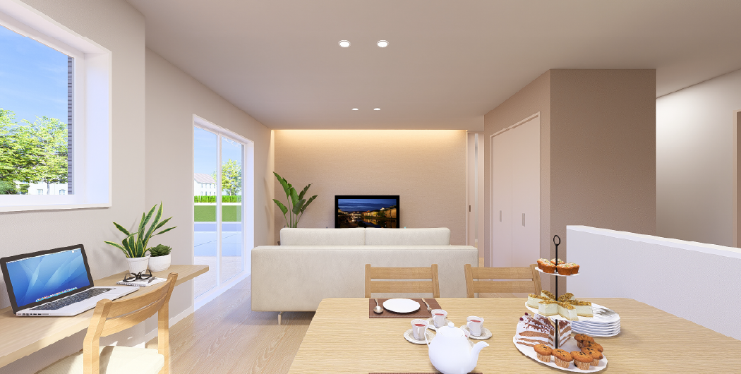 一棟ごとにプロのインテリアコーディネーターが担当し、床や照明、カーテン、壁紙までトータルにコーディネートすることでワンランク上の居住空間を生み出しています。ぜひ現地でご体感ください!さらに全棟カーテン・照明付き。多数の物件でダイニングセット、リビングセットの家具もついています。※ついていない物件もございます。
