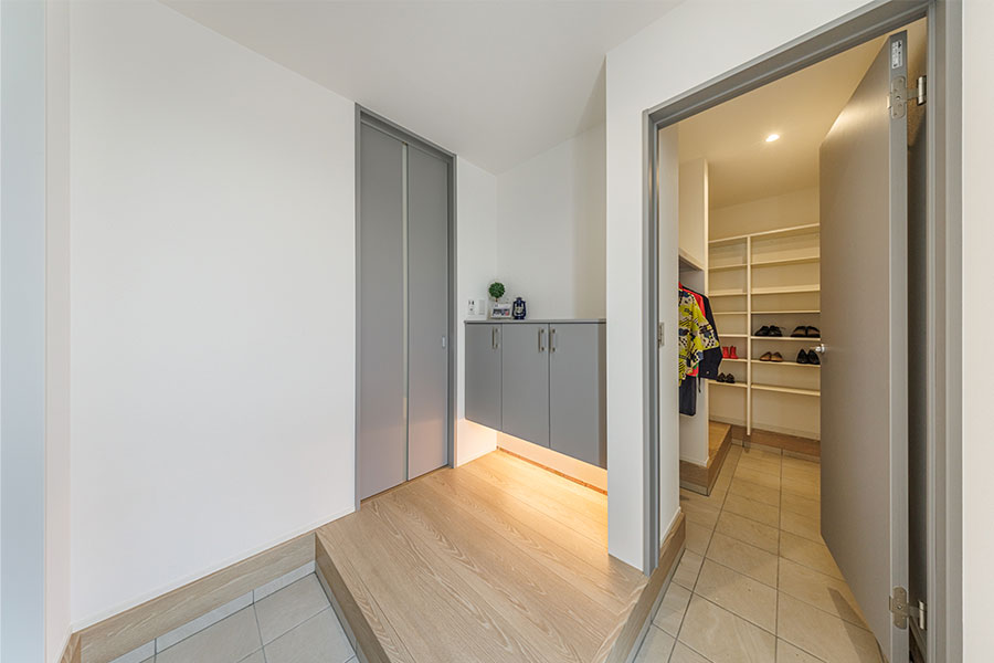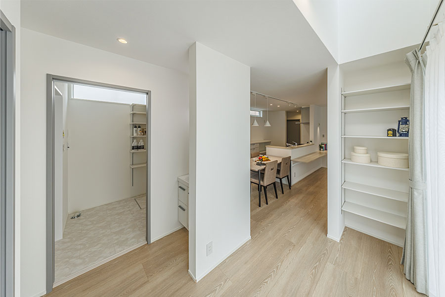 3.クロークに荷物を置いてからリビングへ、買い物帰りは直接パントリー、来客の際はリビングへと使い分けができます!