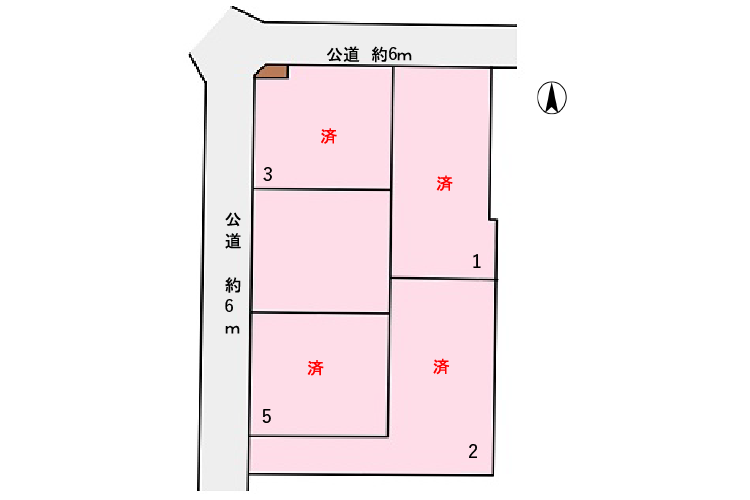 ※区画3・4は西側道路側溝にかかる「道路占用使用料(年間):250円/(接面距離×側溝幅(約1m))」がかかります