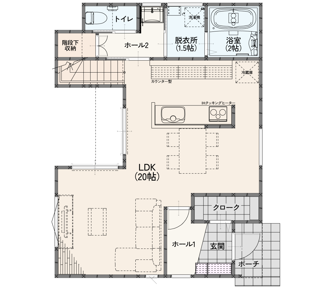 20帖あるLDKは広々としていて家族みんながゆったり快適に過ごせます。
