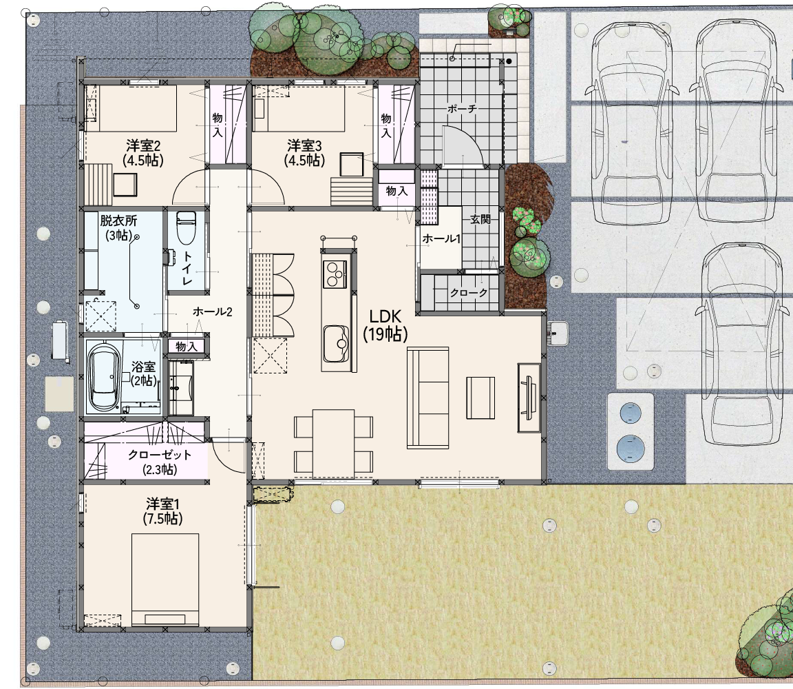 住宅の配置にこだわり、それぞれの暮らしに爽やかな風が流れるようなプランとなっております。