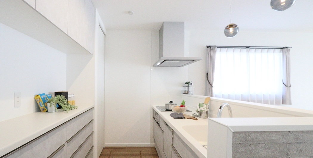 ■キッチンからリビング全体の様子を見渡せるからお子様が小さくても安心。