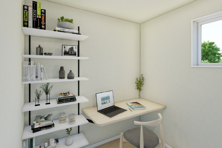 カウンター付きのプライベートスペースは、在宅ワークや趣味に最適。自分時間を快適に過ごせます。