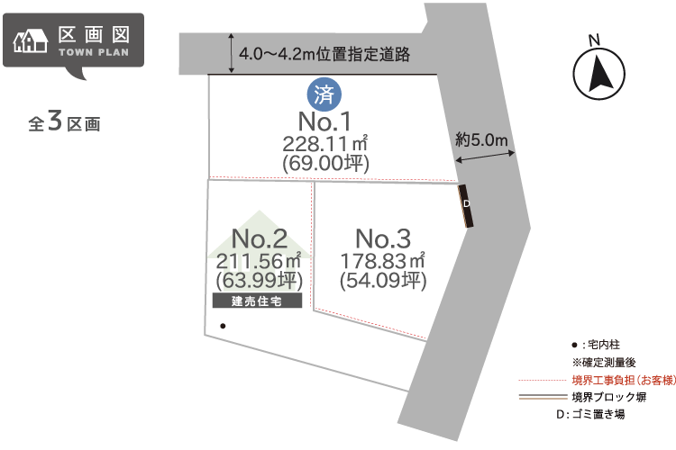 ※区画№2は宅内柱が必要となります