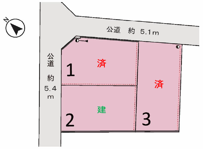 ・区画№1において北側市道の構造物(グレーチング)が一部占有していますが、現況引渡となります。