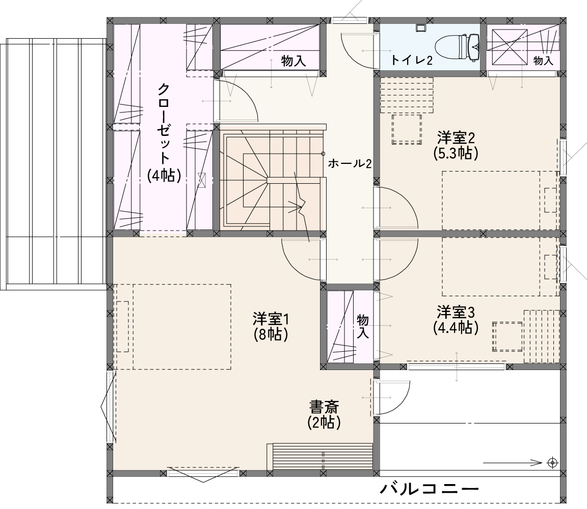 ●3LDK+SIC+ウォークスルークローゼット 階段・ホール収納など収納充実。