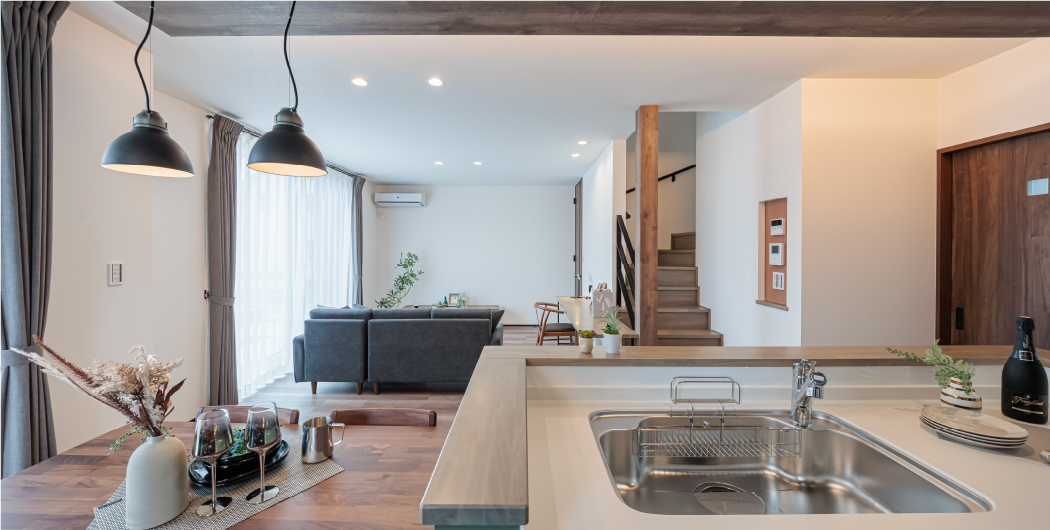 ・間接照明・リビングハイドア・アイアン手すり・家型開口枠 など、お気に入りとこだわりが詰まった住まいです♪
