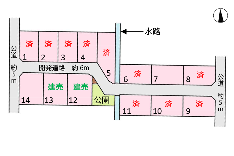 暮らしやすさを追求した分譲地計画分譲地の道路は「開発道路」と言われ、都市計画法による開発許可を受けて設置された公共的な施設です。管理が市町村となるため、コンクリートなどが劣化した場合には市町村が修繕してくれる他、建築基準法により私道よりも道幅が広く、分譲地内での車同士のすれ違いや駐車のしやすさが特徴です。