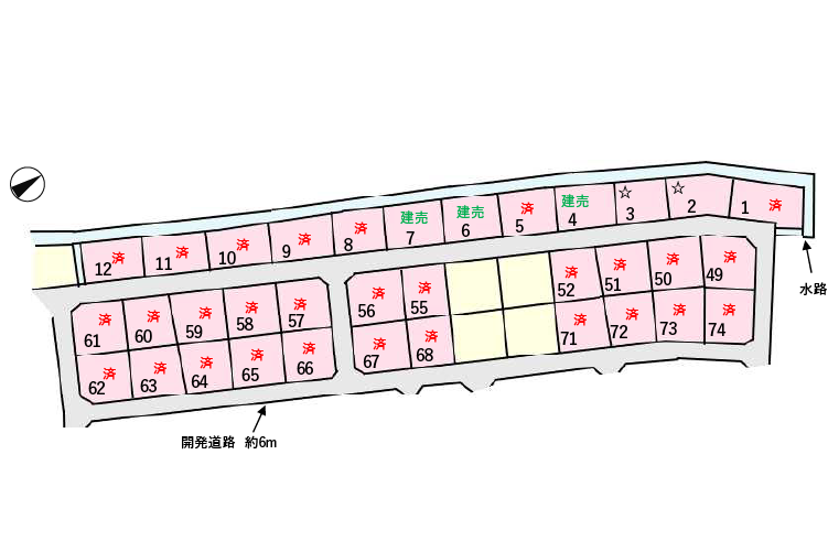 暮らしやすさを追求した分譲地計画分譲地の道路は「開発道路」と言われ、都市計画法による開発許可を受けて設置された公共的な施設です。管理が市町村となるため、コンクリートなどが劣化した場合には市町村が修繕してくれる他、建築基準法により私道よりも道幅が広く、分譲地内での車同士のすれ違いや駐車のしやすさが特徴です。