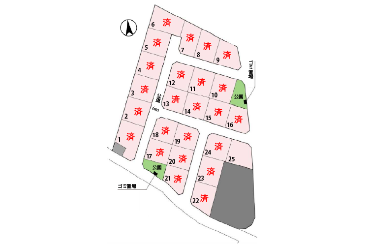 暮らしやすさを追求した分譲地計画分譲地の道路は「開発道路」と言われ、都市計画法による開発許可を受けて設置された公共的な施設です。管理が市町村となるため、コンクリートなどが劣化した場合には市町村が修繕してくれる他、建築基準法により私道よりも道幅が広く、分譲地内での車同士のすれ違いや駐車のしやすさが特徴です。