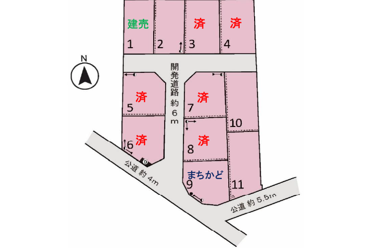 暮らしやすさを追求した分譲地計画分譲地の道路は「開発道路」と言われ、都市計画法による開発許可を受けて設置された公共的な施設です。管理が市町村となるため、コンクリートなどが劣化した場合には市町村が修繕してくれる他、建築基準法により私道よりも道幅が広く、分譲地内での車同士のすれ違いや駐車のしやすさが特徴です。