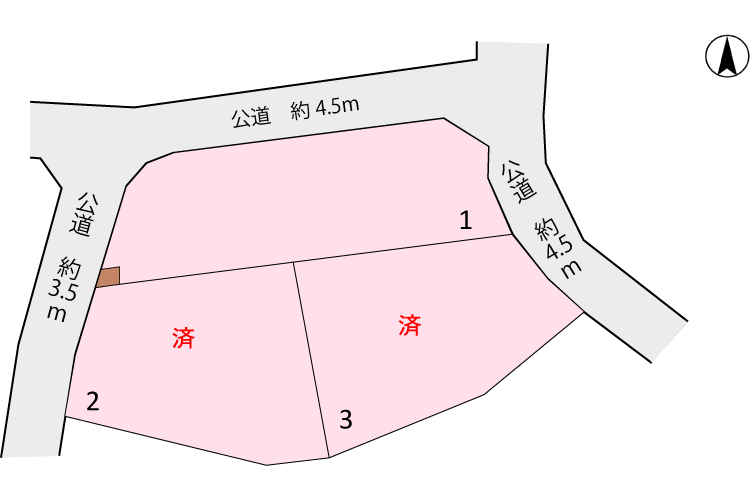 (現況)東側 公道 約4.5m 北側 公道 約4.5m 西側 公道 約3.5m