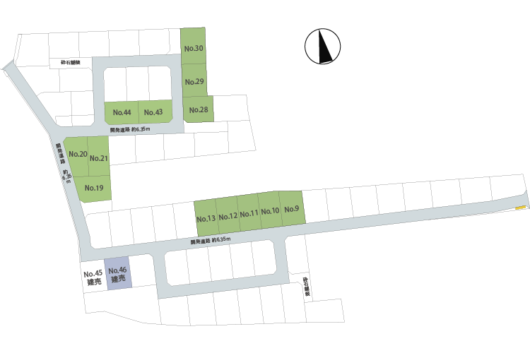 暮らしやすさを追求した分譲地計画分譲地の道路は「開発道路」と言われ、都市計画法による開発許可を受けて設置された公共的な施設です。管理が市町村となるため、コンクリートなどが劣化した場合には市町村が修繕してくれる他、建築基準法により私道よりも道幅が広く、分譲地内での車同士のすれ違いや駐車のしやすさが特徴です。