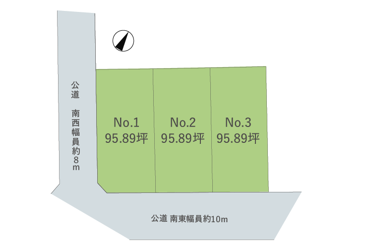 暮らしやすさを追求した分譲地計画分譲地の道路は「開発道路」と言われ、都市計画法による開発許可を受けて設置された公共的な施設です。管理が市町村となるため、コンクリートなどが劣化した場合には市町村が修繕してくれる他、建築基準法により私道よりも道幅が広く、分譲地内での車同士のすれ違いや駐車のしやすさが特徴です。