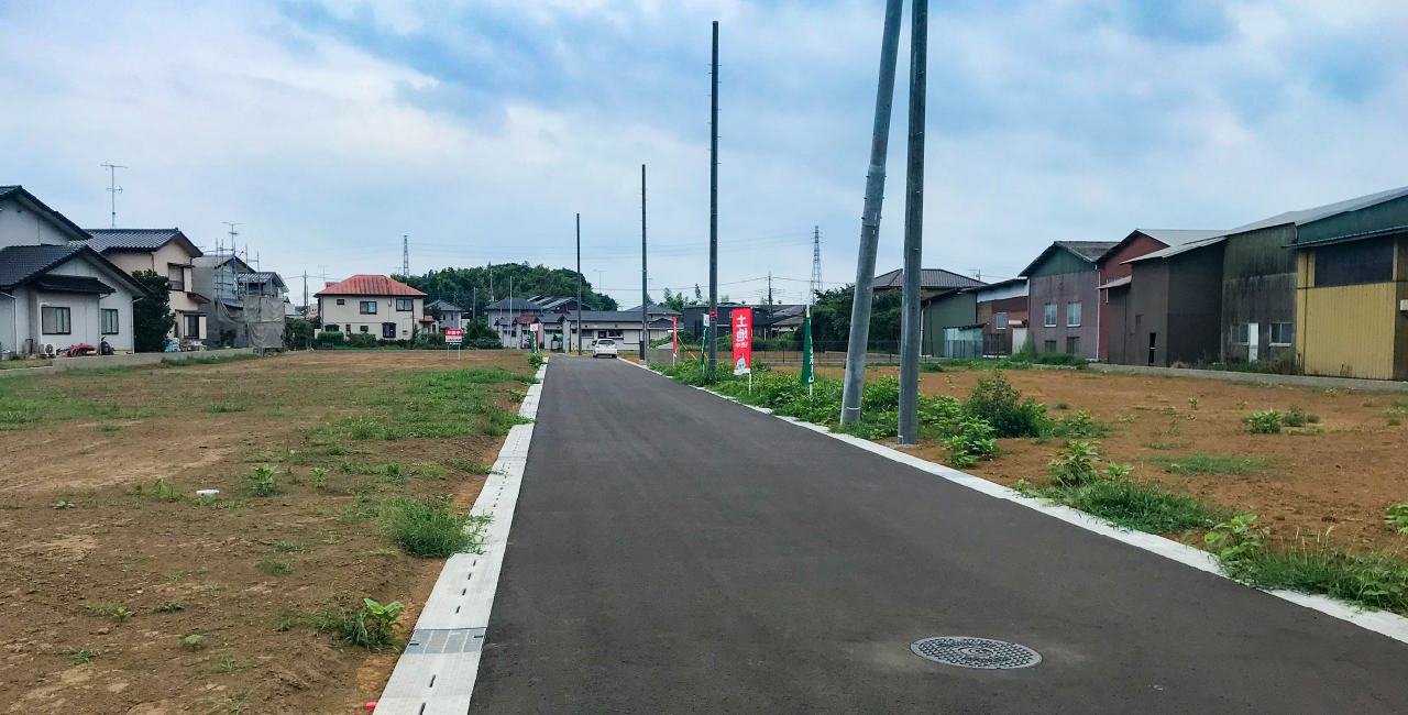 暮らしやすさを追求した分譲地計画分譲地の道路は「開発道路」と言われ、都市計画法による開発許可を受けて設置された公共的な施設です。管理が市町村となるため、コンクリートなどが劣化した場合には市町村が修繕してくれる他、建築基準法により私道よりも道幅が広く、分譲地内での車同士のすれ違いや駐車のしやすさが特徴です。