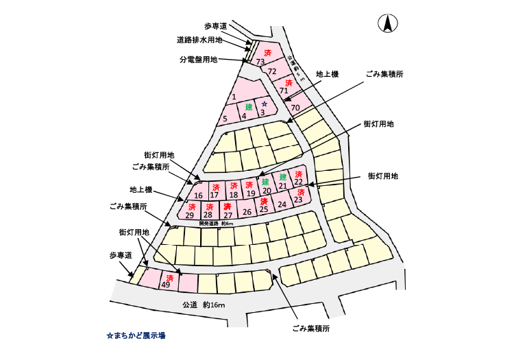 暮らしやすさを追求した分譲地計画分譲地の道路は「開発道路」と言われ、都市計画法による開発許可を受けて設置された公共的な施設です。管理が市町村となるため、コンクリートなどが劣化した場合には市町村が修繕してくれる他、建築基準法により私道よりも道幅が広く、分譲地内での車同士のすれ違いや駐車のしやすさが特徴です。