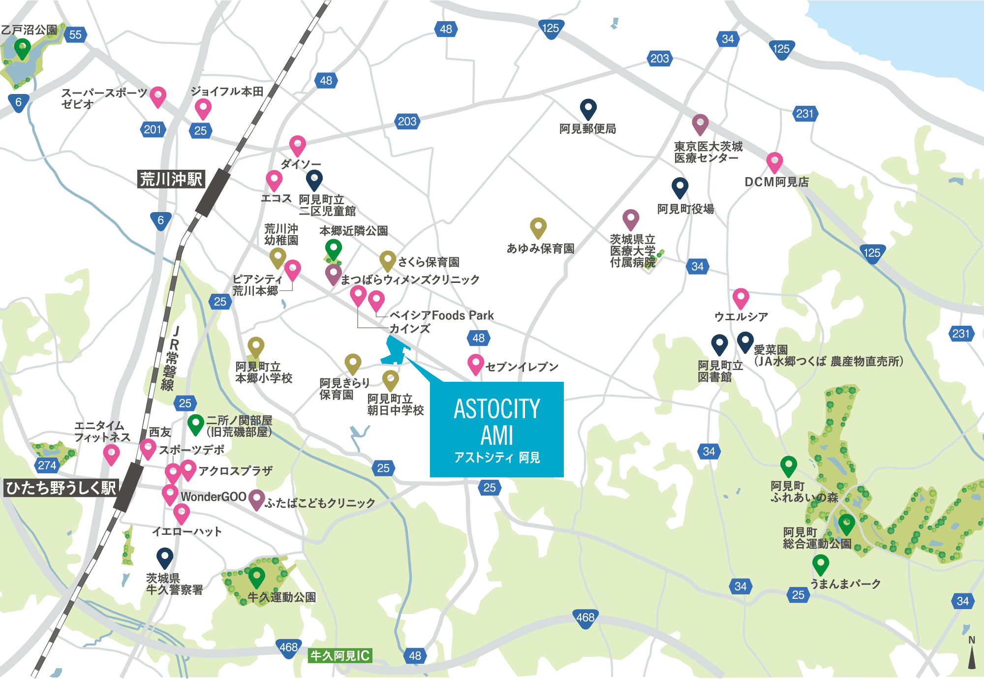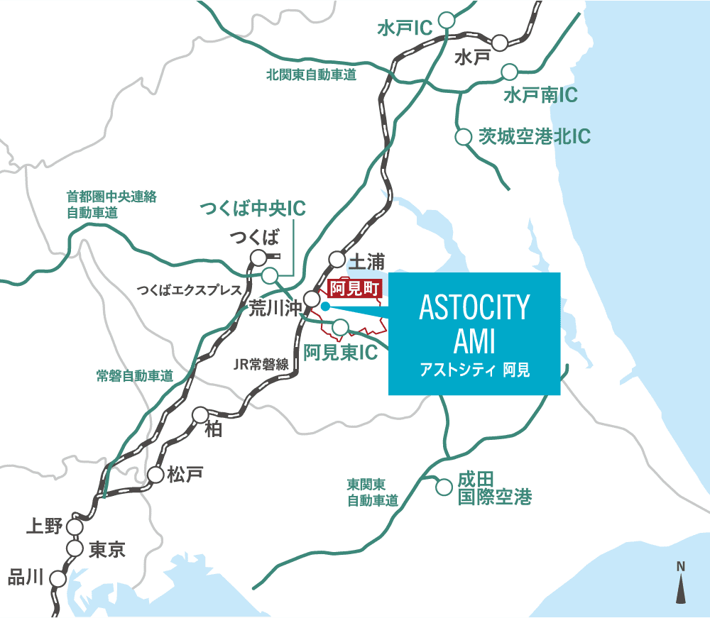県内でも都心に近い南部に位置する阿見町荒川本郷は、東京駅まで約59分のJR常磐線をはじめ常磐道や圏央道など鉄道・カーアクセス共に優れる恵まれたロケーションで通勤・通学に便利な街。つくば市や土浦市に隣接し、多彩な生活施設が揃いながら霞ヶ浦にもほど近く、自然も豊かな恵まれた環境が魅力です。そして今、阿見町によって新たなまちづくりが進行中。新しい公共施設や商業施設の整備、交通網の拡充など、様々な取り組みが計画中で、新たな魅力と豊かな将来性に出逢える、ワクワクする「明日」と暮らせる街です。