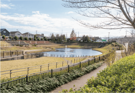 お子さまが元気に遊べるほか、ママ友とのおしゃべりやペットのお散歩、そして豊かな自然も楽しめる普段づかいの公園が身近に充実しています。