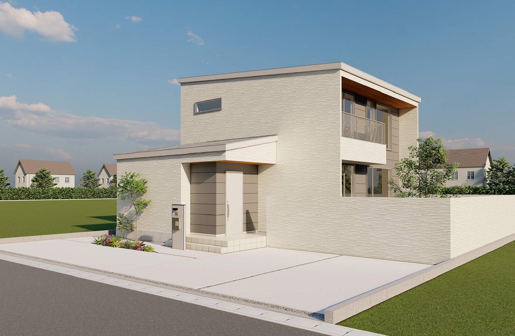 東側に視線が抜けるためウッドデッキとルーフバルコニーを大胆に設置。プール遊びやBBQを爽快なロケーションで思いっきり楽しめます。アウトドア派のご家族のために、家の玄関やシューズインクロークは超特大仕様で設計。