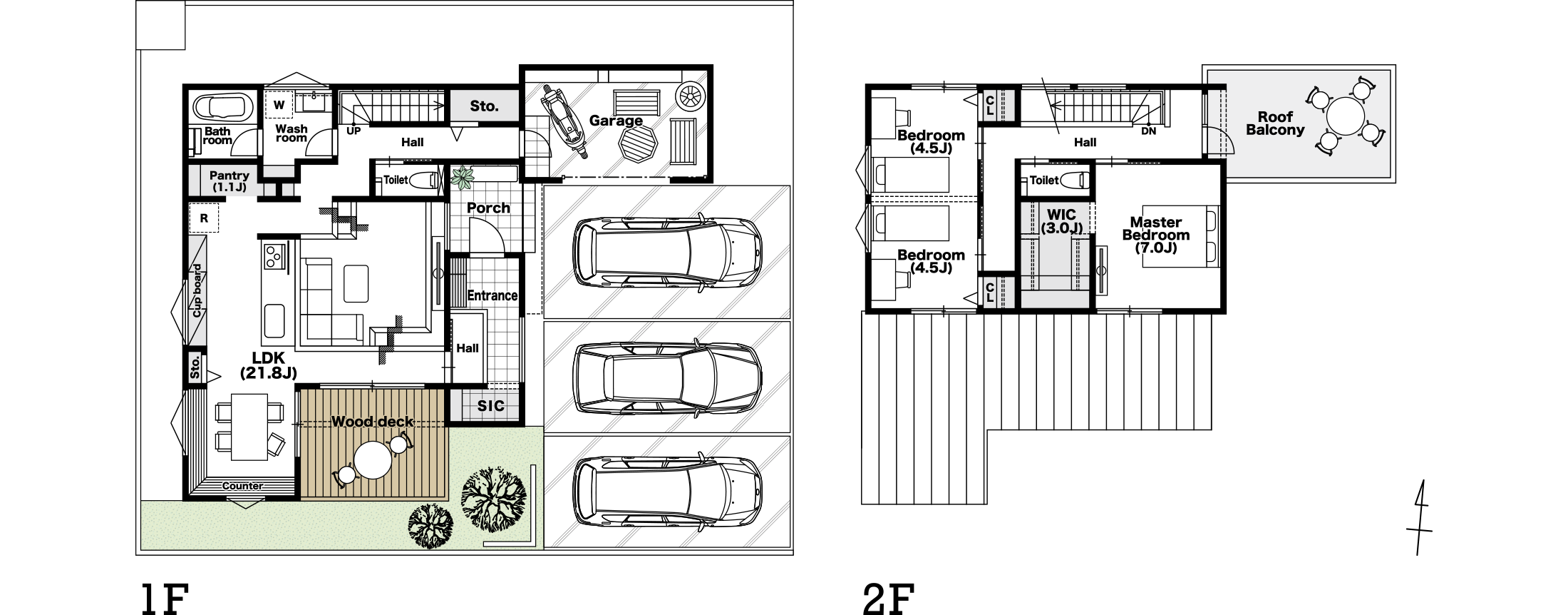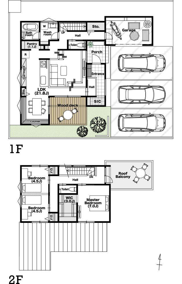 + ウッドデッキ + ルーフバルコニー