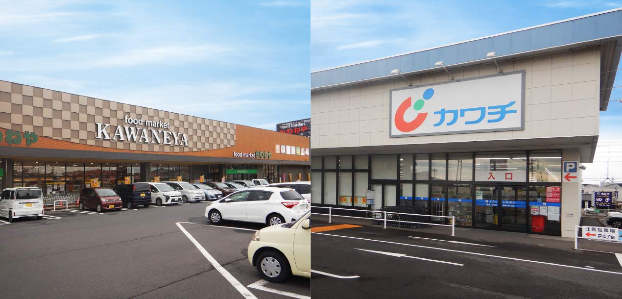 毎日に欠かせない買い物施設が便利な距離に点在。深夜12時まで営業している「ツルハドラッグ」や、殆どの施設で駐車場が充実しているため、サッと車で行くことができるのは嬉しいポイントです。※実測による