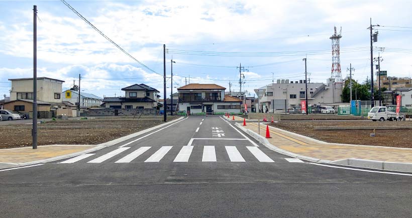 人と車、車と車が余裕を持って行き来できるように道路幅6mを確保。小さな子どもの歩行やペットの散歩などの場合に安全性が高まります。