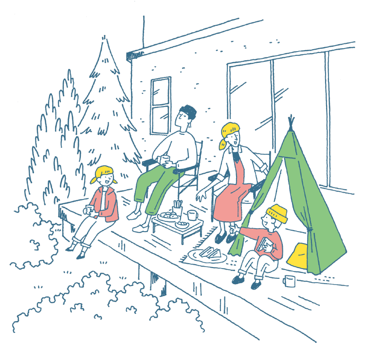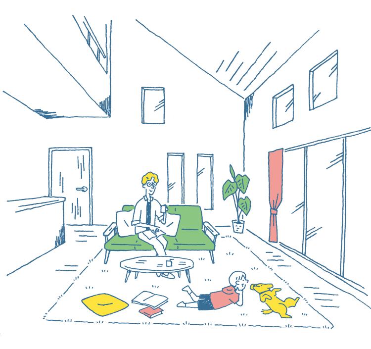 敷地の広さを活かしたプランニングで、陽光や風を取り込み、さらに隣家の音や視線も気にならない気持ちのよい距離感を確保します。