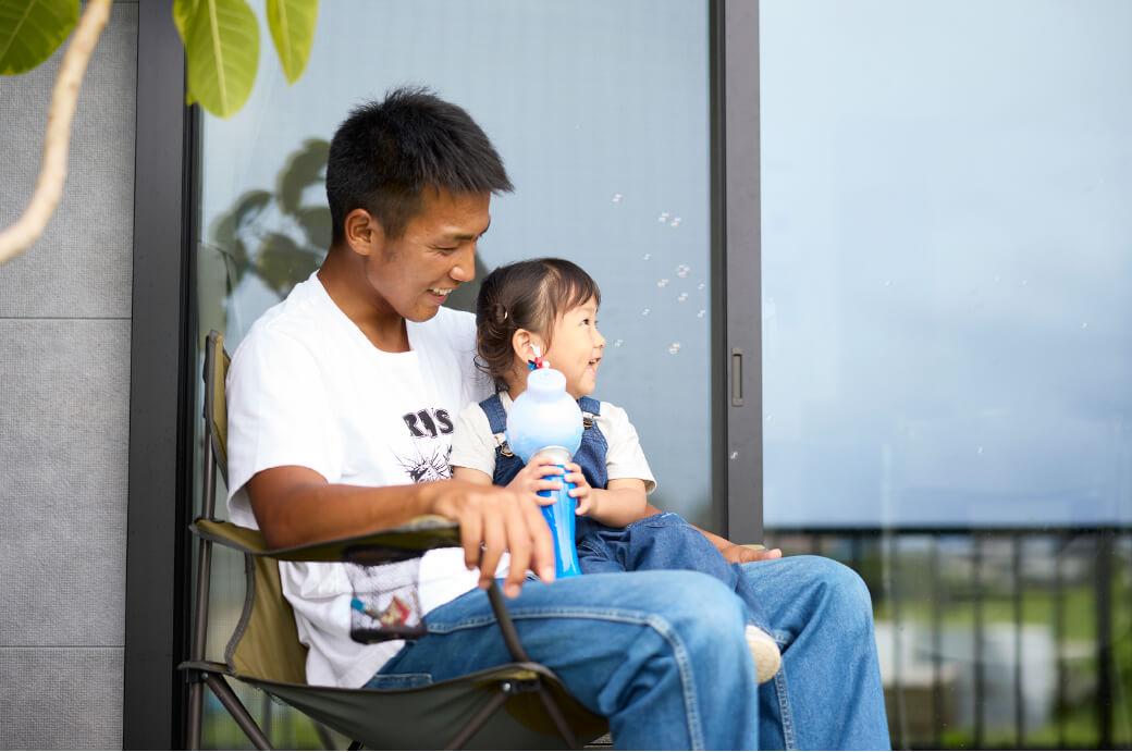 「車通りが少なく、安心して子育てできる町だと思います。海に近く自然も豊かなところもいいですね。不便じゃないかと思われるかもしれませんが、車に乗ればスーパーなども気軽に行ける近さにあるし、のんびりと落ち着いて暮らしたいと考えていたぼくらにとっては理想的でした。それから、住んでいる『人』もいいんですよ。やさしくて接しやすい人が多く、会うとみんな挨拶してくれます。住み始めてまだ1年も経っていないですが、この町を選んで良かったと思っています。今後、分譲地が増えていくことにより同年代の子育てファミリーも増え、コミュニティがもっと豊かになっていくことに期待しています」。