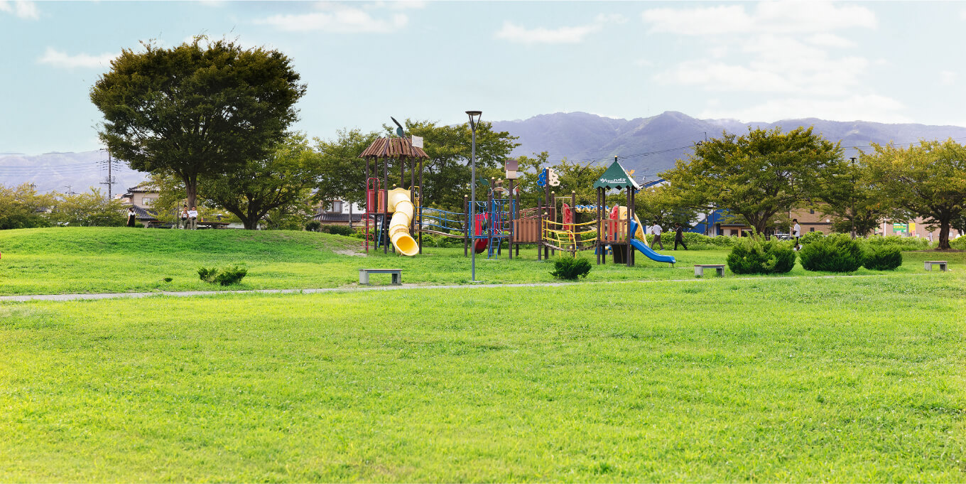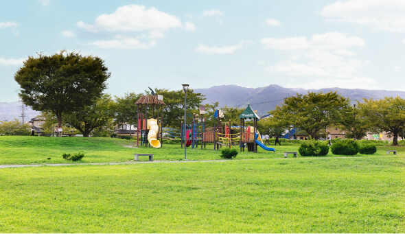 親子や同じ街区のご家族と過ごすのに便利な街区内公園。また、子どもが学校の友達と遊ぶ時に使える「磯原中央公園」が小学校の目の前にあります。明るく開放的な公園のため地域の人々の目が届いて安心です。