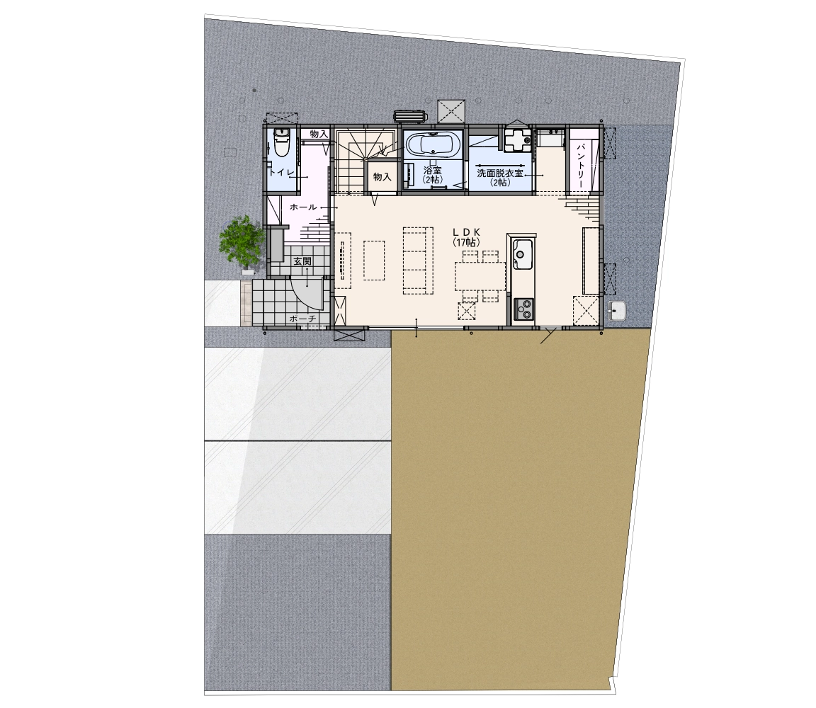 ゆとりのある駐車スペース×道路に面さない安全な南庭