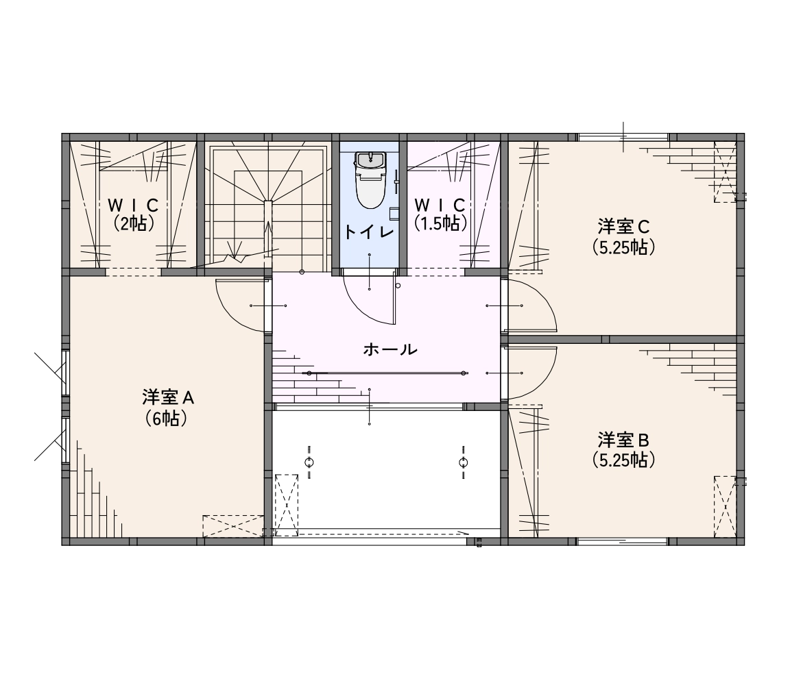 5.南向きのインナーバルコニーと2Fホールの室内干しスペースで、梅雨も花粉シーズンも安心してお洗濯